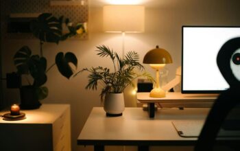 Good lighting is essential for both comfort and productivity. Try to set up your desk near a window to take advantage of natural daylight. Natural light can boost your mood and reduce eye strain. If natural light is limited, invest in quality task lighting, such as an adjustable desk lamp with warm light settings.